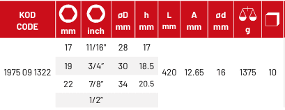 izeltaş 1/2 '' ADAPTÖRLÜ ANAHTARI İSTAVROZ TİPİ 17-19-22 mm - 1975 09 1322