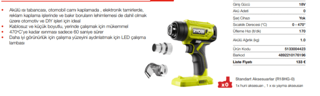 RYOBI ONE+SICAK HAVA TABANCASI (R18HG-0)